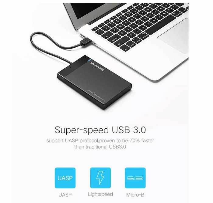 Home Networking Network Adapter Ugreen External HDD SATA Case Adapter, USB 3.0 Enclosure for 9.5mm 7mm SSD HDD SATA I / II / III UASP Supported Compatible with WD, Toshiba, Seagate, ...