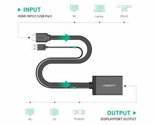 Home Networking Power Ugreen MM107-40238 HDMI to DisplayPort Adapter | 4K 30Hz HDMI to DP Converter