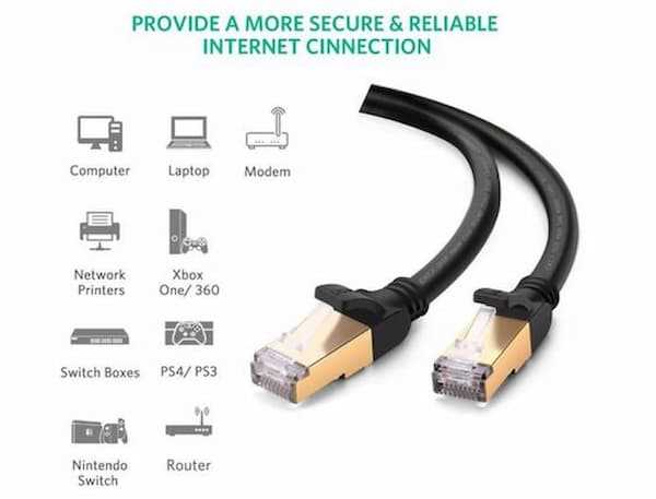 Home Networking Power Ugreen NW107-11273 Cat 7 STP Lan Cable 10 Meter - Black