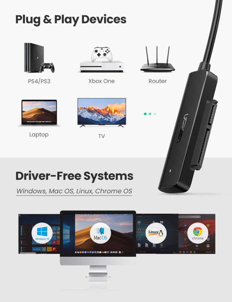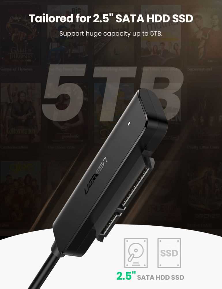Home Networking Power UGREEN SATA to USB 3.0 Adapter Cable for 2.5 SSD and HDD Hard Drive Adapter | 5Gbps Support SATA III UASP Compatible with Samsung Seagate WD SanDisk H...