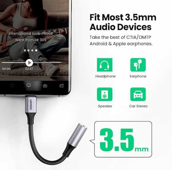 Home Networking Power Ugreen Type C Male To 3.5mm Audio Adapter 10CM, Empowered A High-Performance DAC Chip (Support Ipad Pro and Samsung Note 10) | AV161-80154