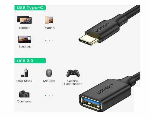 Home Networking Power Ugreen US154-30701 USB Type C To USB 3.0 Female Cable (15cm) - Black