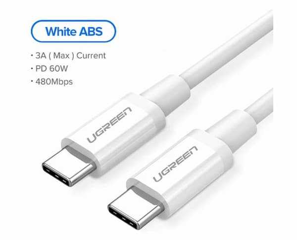 Home Fiber Optic Cables Accessories Ugreen US264-60520 USB Type C 2.0 Male To Male Charger Data Cable (White)-2 Meter