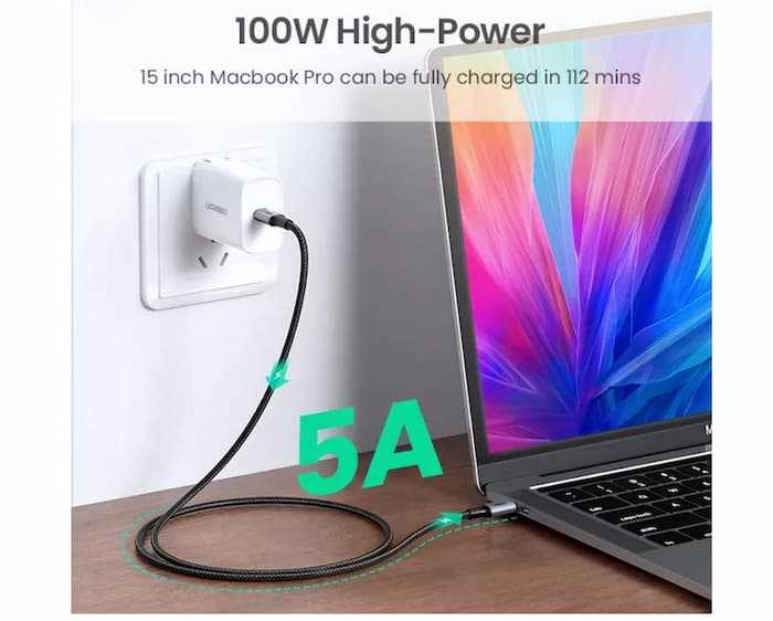 Home Fiber Optic Cables Accessories Ugreen US316 100W USB-C to USB-C Cable 5A USB Type C 100W PD Charging Cord for Ipad Pro 2021 iPad pro 2018/Apple MacBook Air 2018/MacBook Pro 2018, SA...