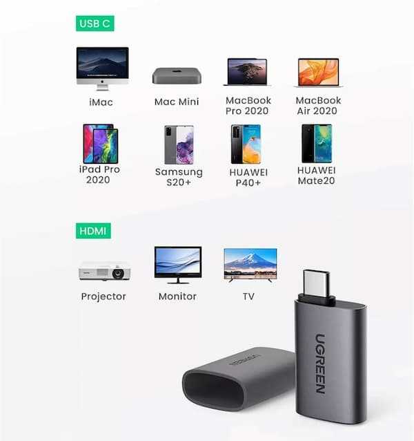 Home Networking Power Ugreen US320-70450 SB-C Type-C Male To HDMI Female Adapter for MacBook Pro, MacBook Air, iPad Pro, Pixelbook, XPS, Galaxy, and More