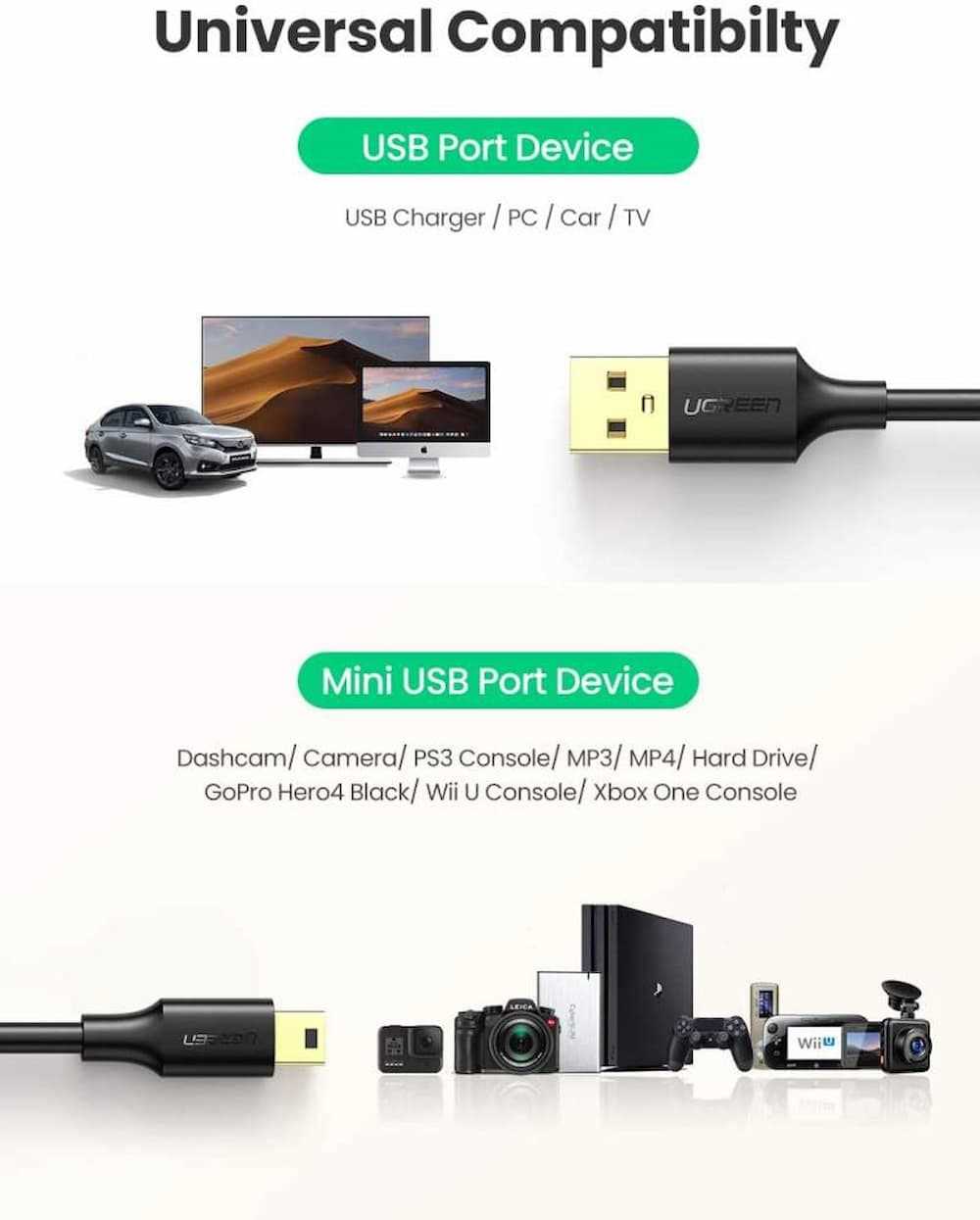 Home Networking Power Ugreen USB 2.0 A Male to Mini 5 Pin Male Cable Gold Plated - US132 30472