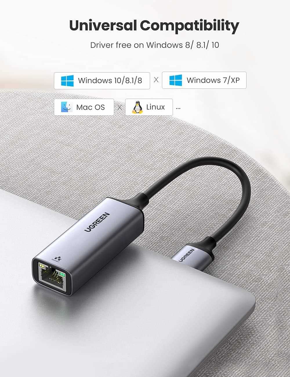 Home Networking Power Ugreen USB 3.0 to Network Gigabit RJ45 LAN 1000Mbps Adapter Converter Gray (CM209 50922)