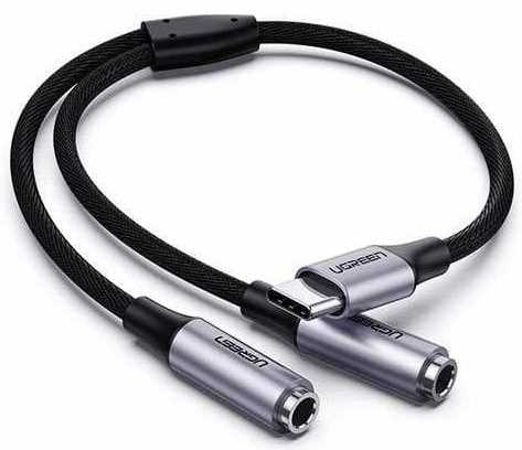Home Networking Power Ugreen AV144-30732 USB Type-C to Dual 3.5mm Headphone and Mic Adapter, 25cm Audio Splitter Cable