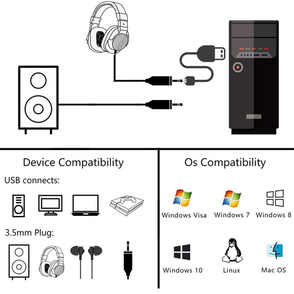 Home Networking Power USB Audio Adapter External Sound Card with 3.5mm Headphone and Microphone Jack for Windows/Mac/Linux/Pc/Laptops/PS4