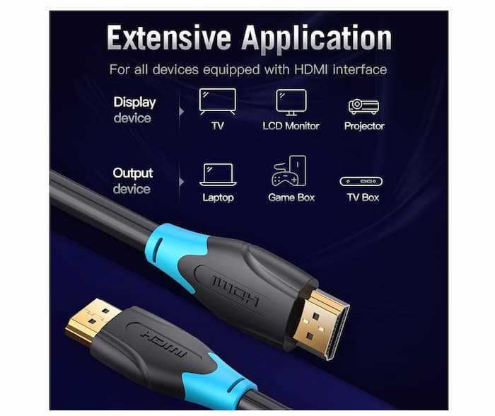 Home Fiber Optic Cables Accessories Vention AAC 4K 60Hz High Speed HDMI Male to Male 2.0 Cable HDMI Adapter with 3D for HD TV, Projector, Laptop, PS3, PS4, PC, Monitor