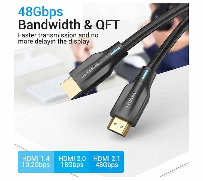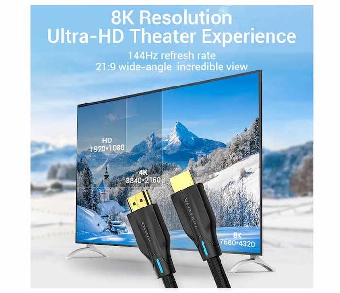 Home Fiber Optic Cables Accessories Vention AAU Cotton Braided 8K HDMI Cable | 8K/60Hz Resolution 48Gbps Vision