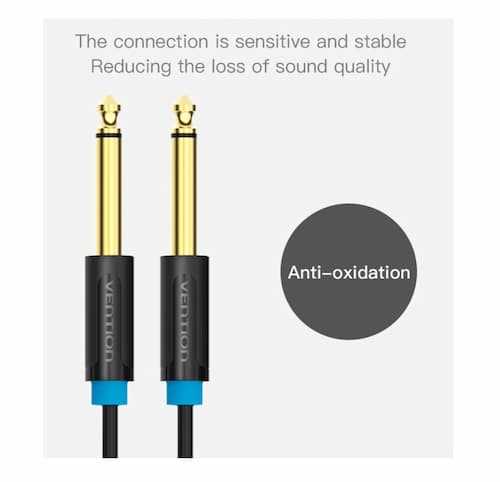 Home Electronics Adapters & Cables Vention BAA 6.5mm Aux Guitar Cable | 6.35mm Male-to-Male Audio Cord for Guitar | Mixer, Amplifier & Speaker (8M)