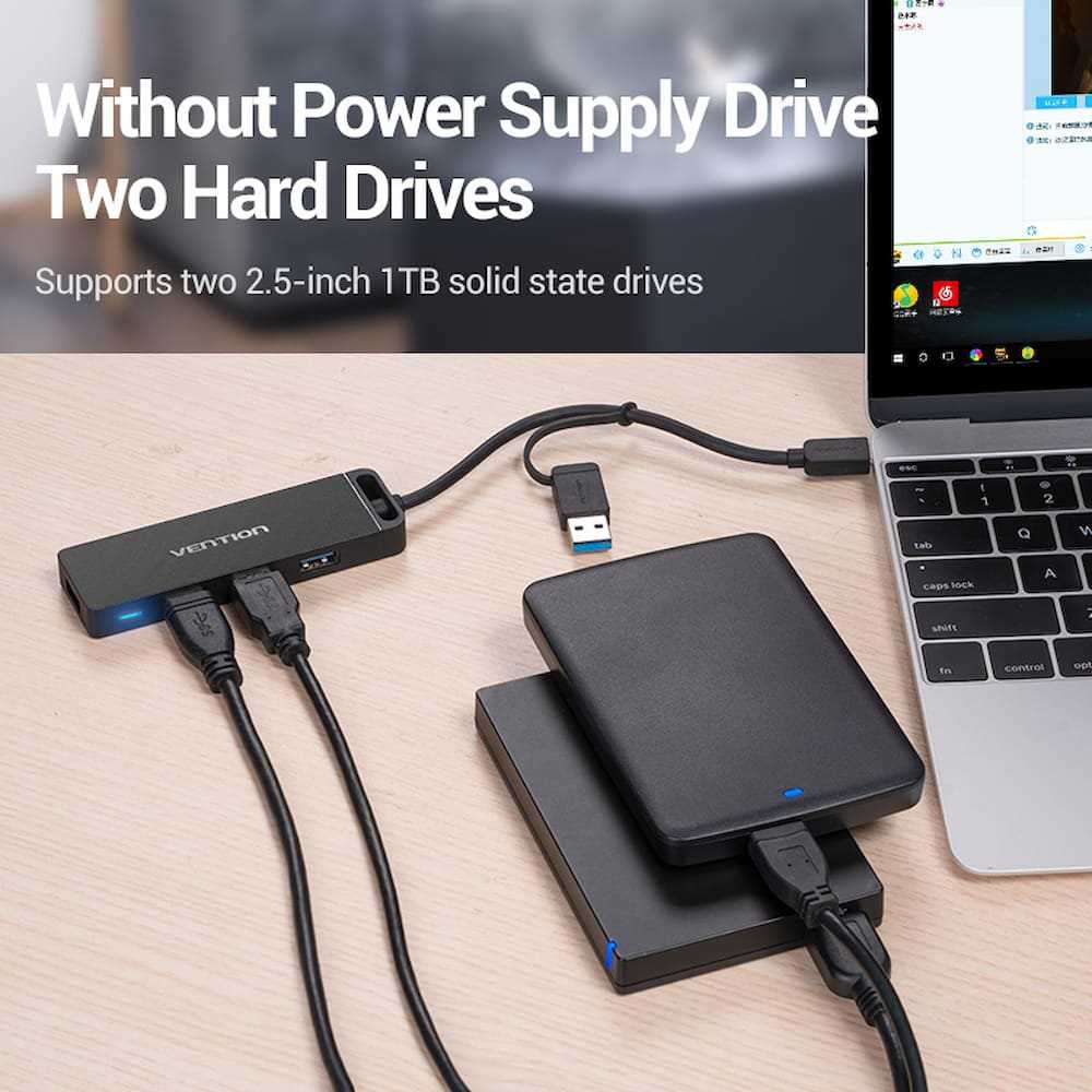 Home Networking USB Hubs Vention CHTBB USB 3.0 Hub and USB Type-C 2 in 1 USB Hub Expand 4 USB Ports for Laptop, Computer, Hard Drive, U-disk Cellphone