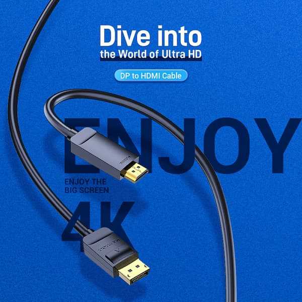 Home Fiber Optic Cables Accessories Vention HAG DisplayPort to HDMI 4K Cable DP Male to HDMI Male High-Speed AV Cable