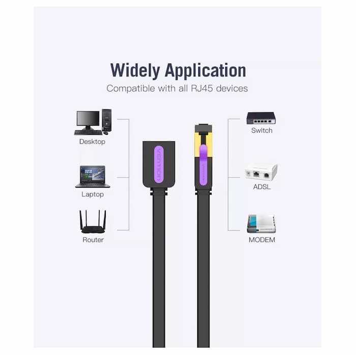 Home Networking Power Vention ICB Cat 7 Network Extension Flat Ethernet Cable STP, FTP High Speed Network Cable RJ45 Male to Female Lan Cable for PC, Laptop, Router