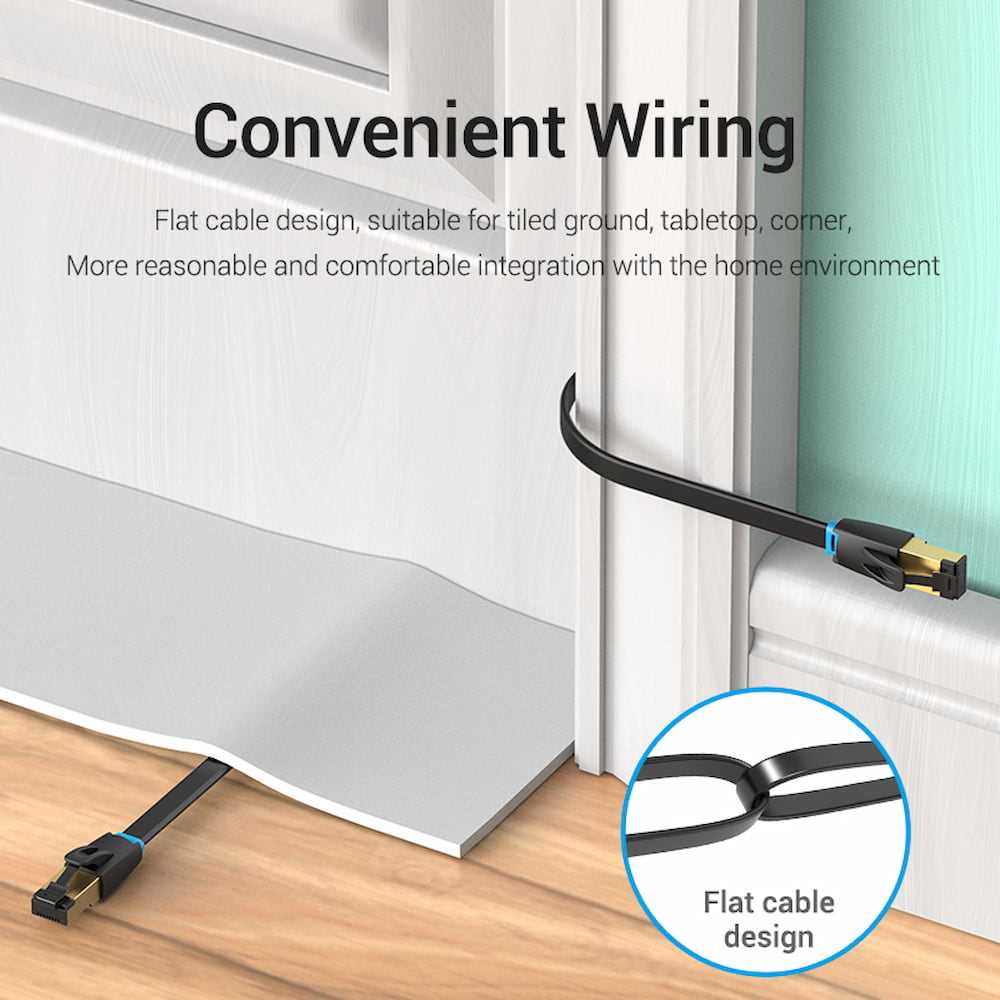 Home Fiber Optic Cables Fiber Patch Cables Vention IKC Cat8 Flat Ethernet Patch Cable Black High Speed RJ45 LAN
