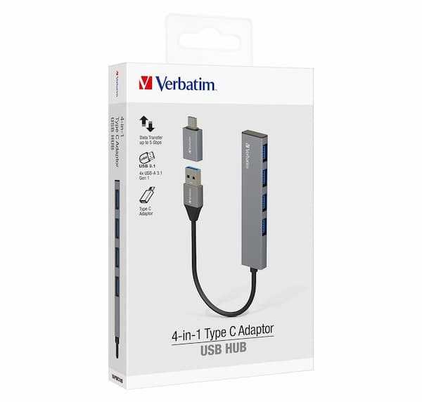 Home Networking USB Hubs Verbatim 66627 4-in-1 USB 3.0 Hub with Type-C Adaptor