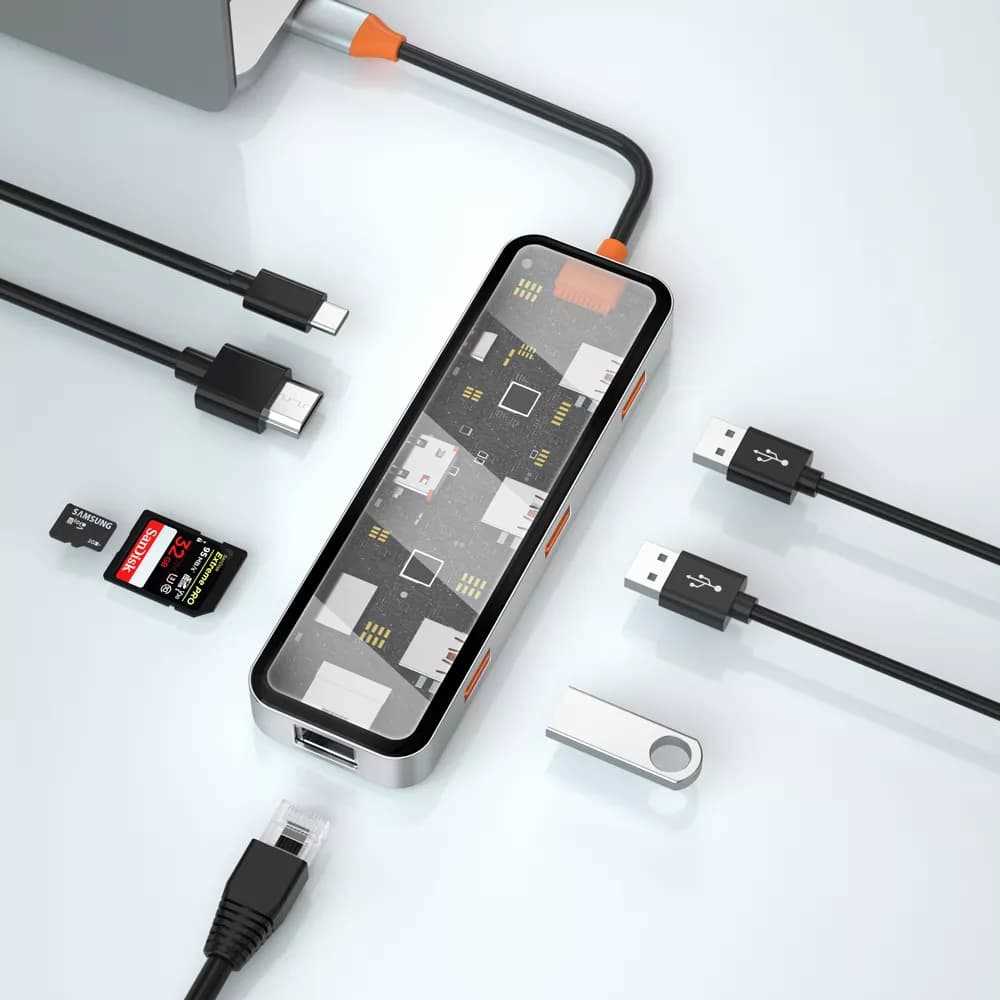 Home Networking USB Hubs WiWU Alpha 8-in-1 Type-C Cyber Hub (Transparent)