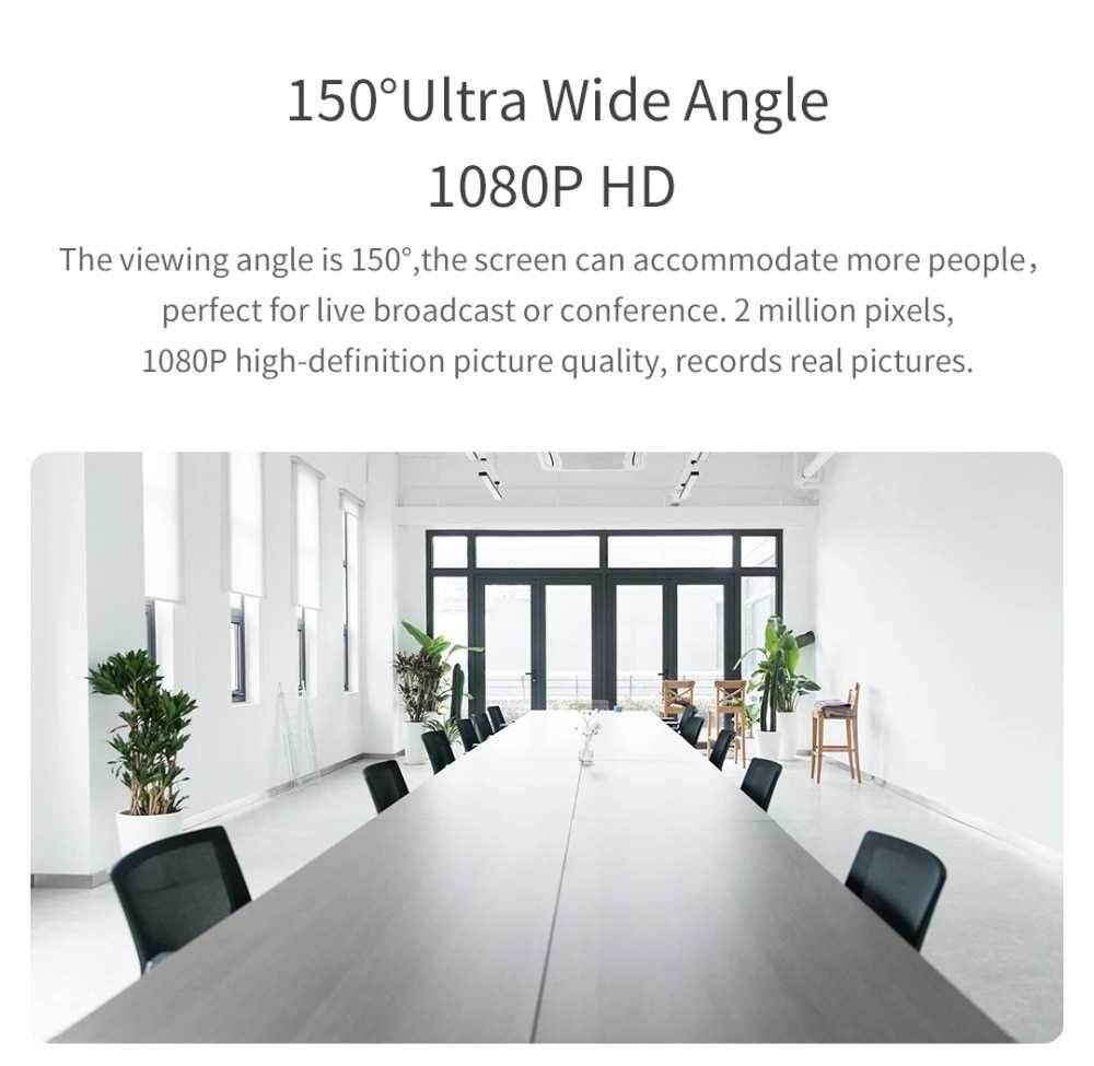 Home Networking Conferencing, Phones Xiaomi Xiaovv 1080P HD Auto Focus 150 Degree Super Wide Angle Built-in Noise Cancelling Microphone USB Webcam (Black)